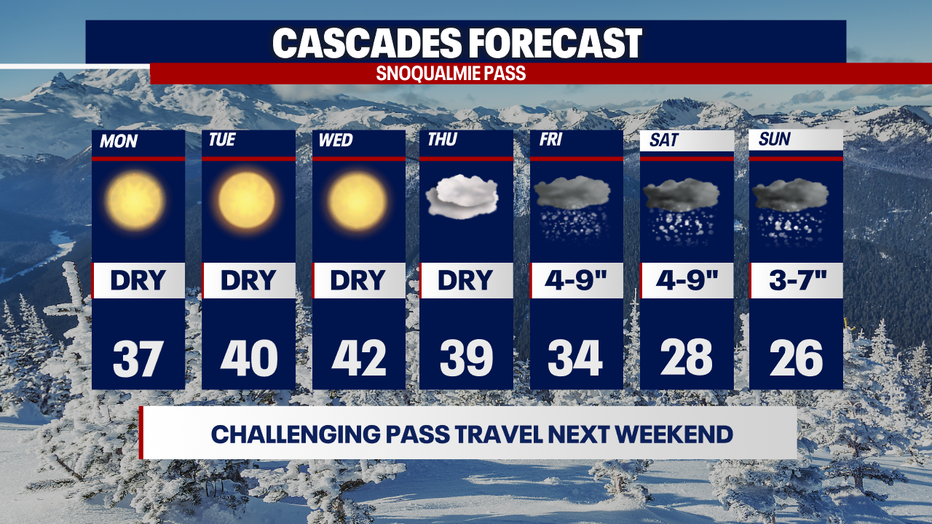 Snow will fire up over the Cascade mountains on Friday. (FOX 13 Seattle)