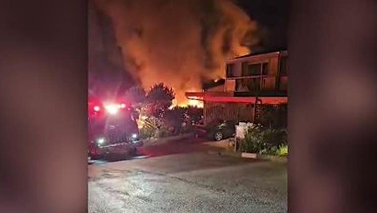 Crews responded at about 10:20 p.m. to a report of large flames visible at the Lake Village Condominiums off Lakeview Drive.