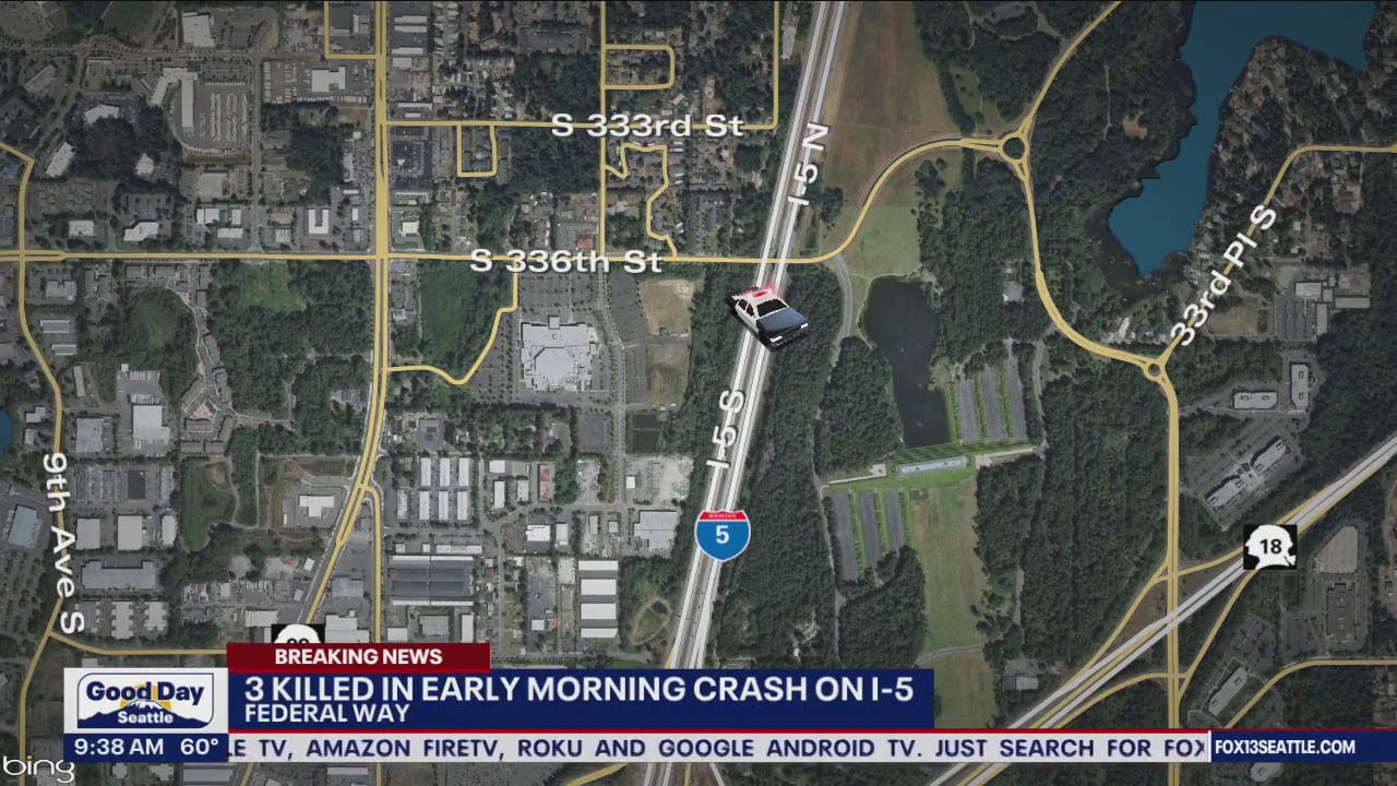 FEDERAL WAY, Wash. - Three people were killed in a car crash on I-5 near Federal Way early Sunday morning.