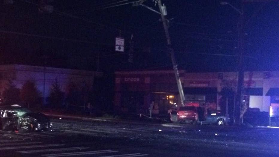 A pickup truck traveling at high speeds slammed into at least nine other vehicles on South Rainier Avenue late Friday. (Photo: KCPQ-TV)