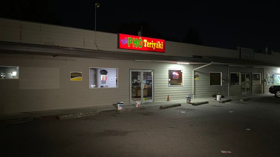 Before 12:30 a.m. Thursday, police said the first robbery happened at a Pho restaurant in Tacoma, where the suspects threatened the workers with a gun.