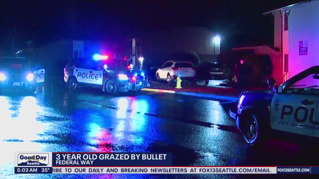 FEDERAL WAY, Wash. - A 3-year-old boy was grazed by a bullet Sunday night after a shooting at a Federal Way apartment.
