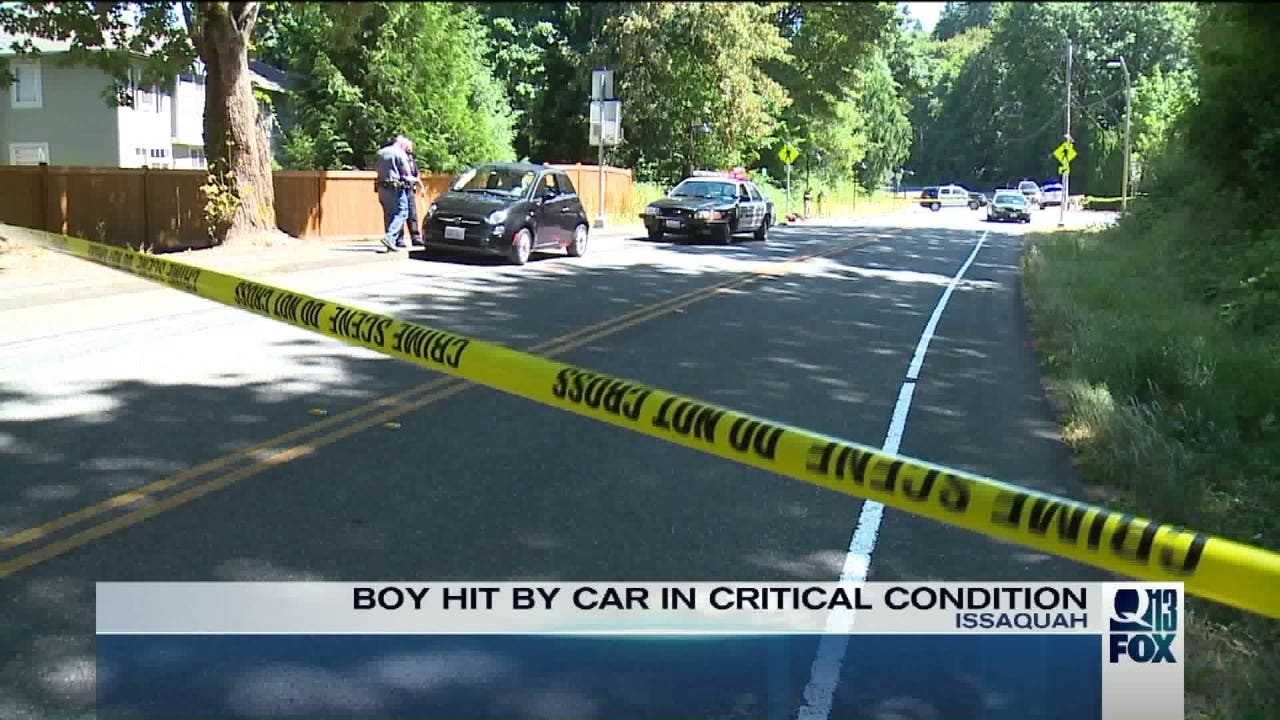 ISSAQUAH, Wash. -- A 4-year-old boy was struck by a car and critically injured Friday while walking with his mom in a crosswalk in Issaquah, officials said.