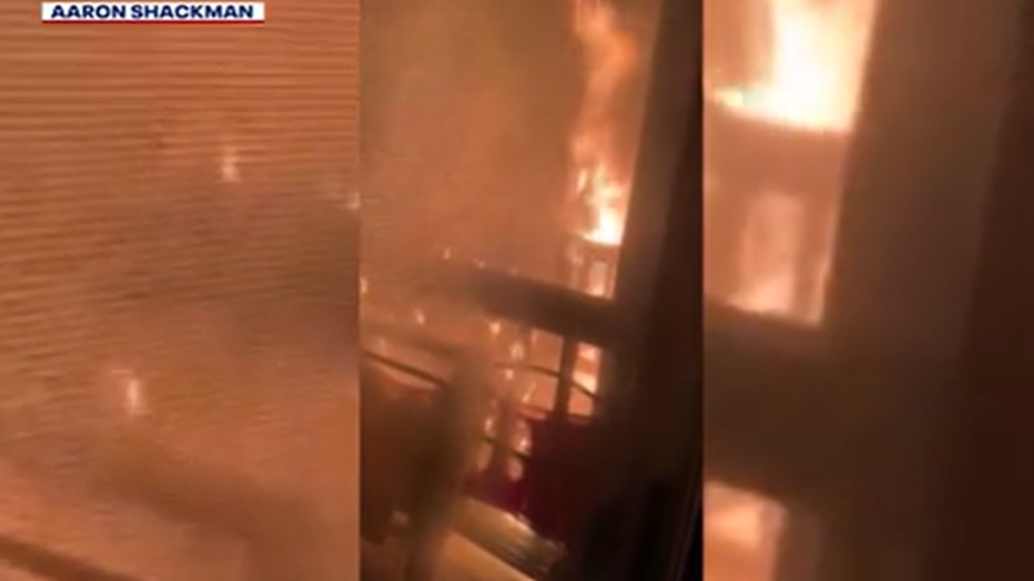 The picture below was provided by Aaron Shackman, who captured the flames as they set his balcony on fire.
