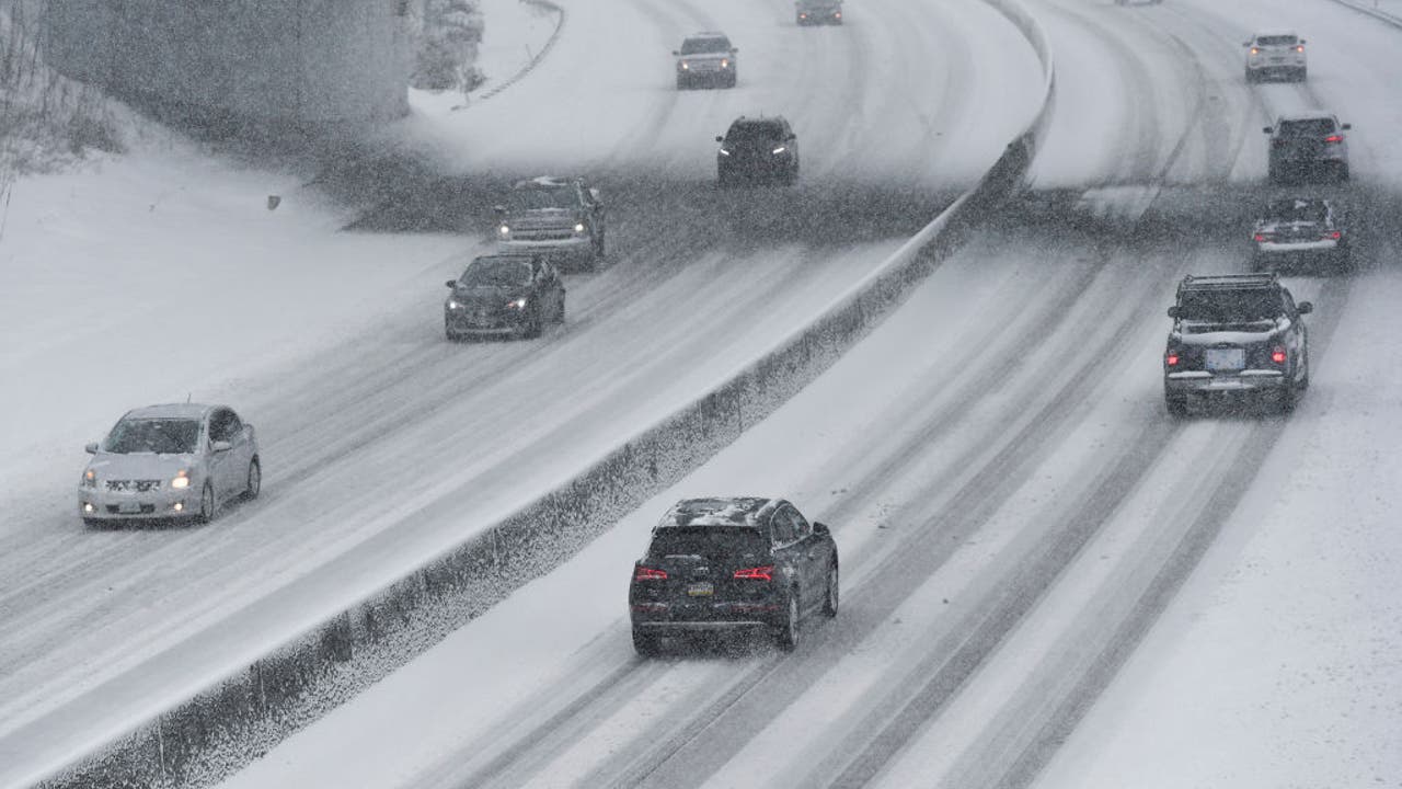 Spring twp., PA - February 22: Cars drive on snow covered route 222 in Spring Township. During a snow storm in Spring Township Monday morning February 22, 2021. (Photo by Ben Hasty/MediaNews Group/Reading Eagle via Getty Images)