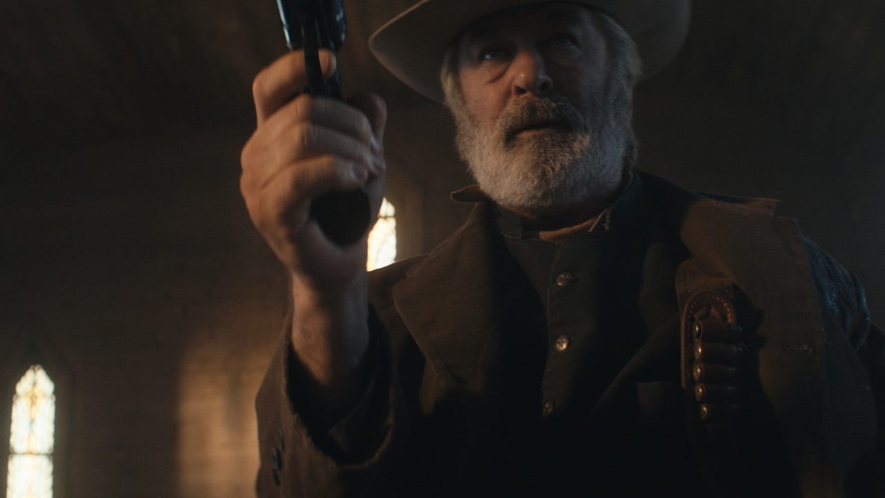 A screengrab from rehearsal footage shows actor Alec Baldwin on the set of "Rust" practicing with a gun prior to the fatal Oct. 21, 2021, shooting near Santa Fe, New Mexico. (Credit: Santa Fe Sheriff’s Office)