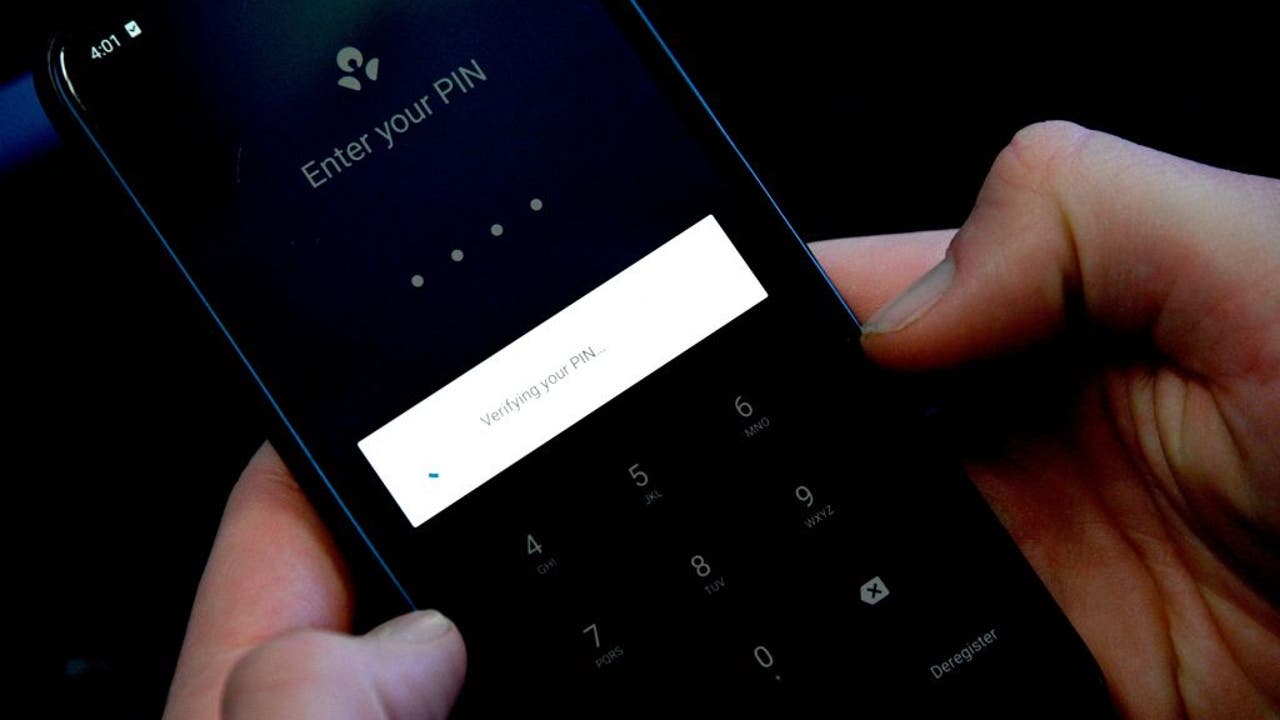 This photo illustration shows a man trying to log into his bank account through a mobile app in Sydney on June 17, 2021, as the country's major banks reported online outages affecting their websites and apps. (Photo by SAEED KHAN/AFP via Getty Images