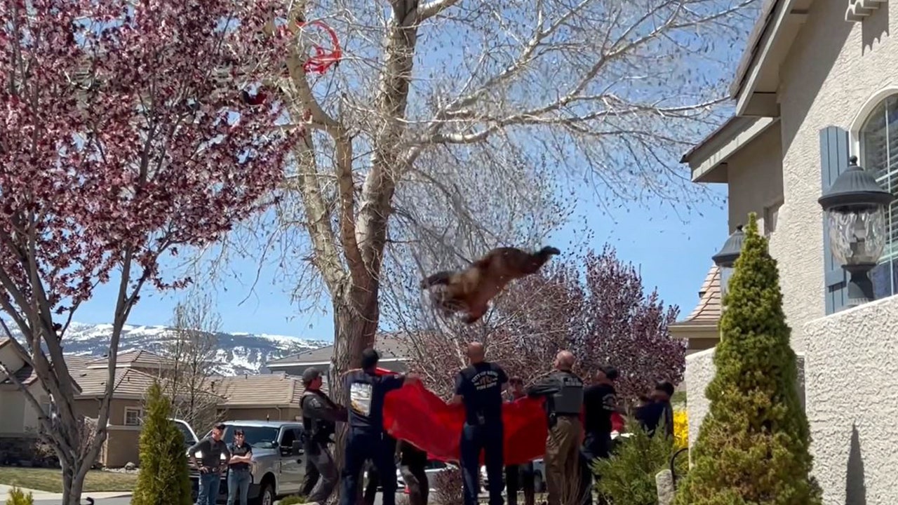 ‘Bear-y’ lucky: Nevada firefighters rescue bear stuck in tree
