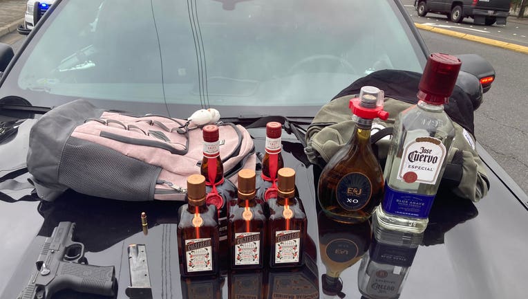 Officers were called Wednesday morning to a store in the Factoria neighborhood, where two suspects had reportedly stolen alcohol. When they arrived, they located both suspects, who tried to run.