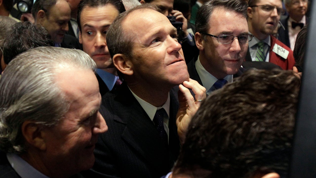 FILE - Nielsen Company CEO David Calhoun, center, watches progress as he waits for the company's IPO to begin trading on Jan. 26, 2011, on the floor of the New York Stock Exchange. Boeing said Friday, March 3, 2023, that they rewarded their CEO David