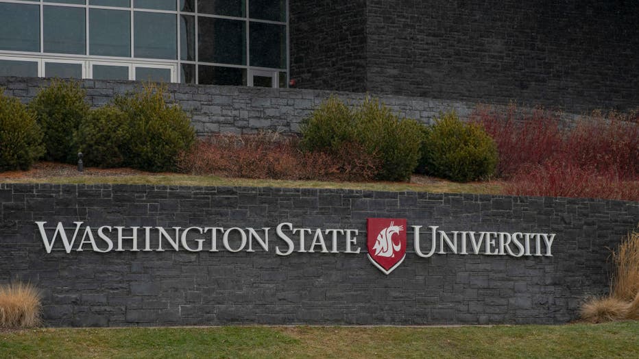 A sign for Washington State University, where the suspect in a Moscow, Idaho quadruple murder was a graduate student, is seen on January 3, 2023 in Pullman, Washington. (Photo by David Ryder/Getty Images)