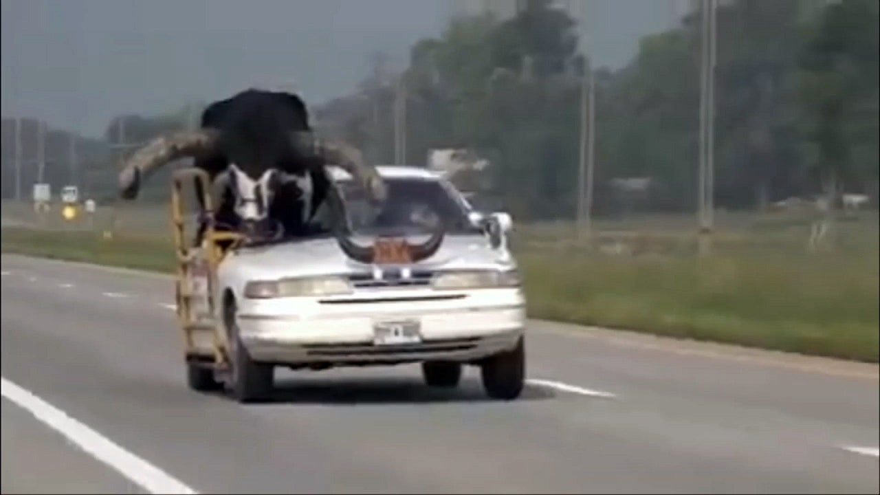 Watch: Bull rides shotgun through Nebraska town, gets pulled over by police