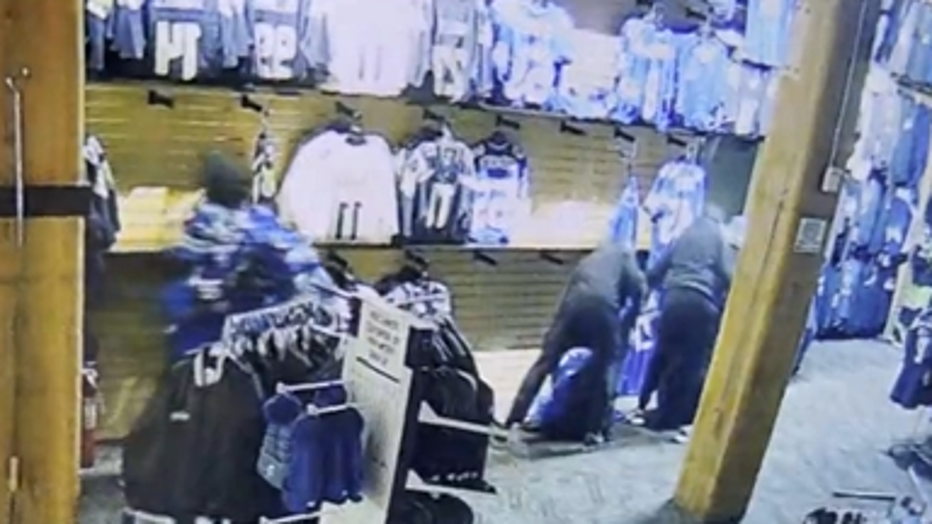The store owners say the thieves didn't waste time, stuffing merchandise from the Pro Image Sports shop into garbage bags and fleeing with just about a week to go before the Super Bowl.