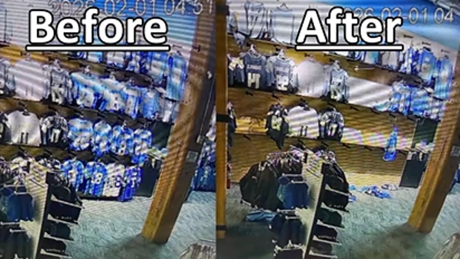"You’ll see from right here to right here over was cleaned out, and definitely hit a rack over here as well," said Klayton Frongner, who is part of the ownership group at Pro Image Sports.