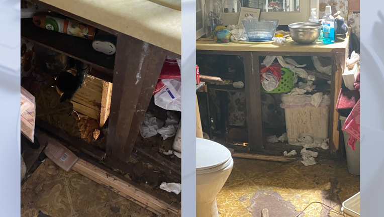 After failing to respond to surrender instructions, K-9 Knox was deployed in an attempt to locate the suspect. K-9 Knox became fixated on the bathroom sink cabinet doors. It did not appear anyone was in there, but when the cabinet doors were opened, a hole in the floor was revealed.