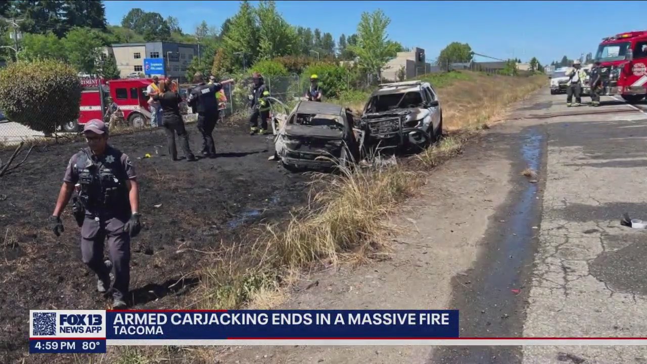 Tacoma armed carjacking ends in a massive fire