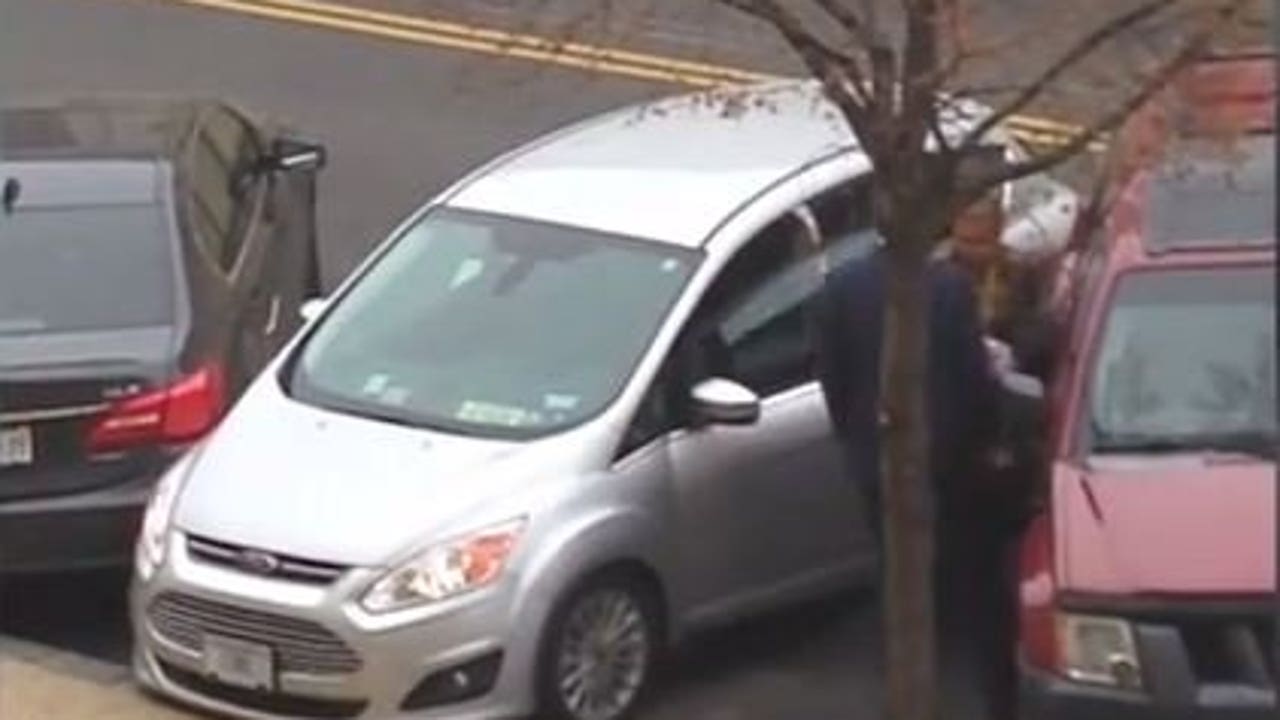 An aide is seen in the video running around the D.C. delegate's car trying to help her out of the spot.