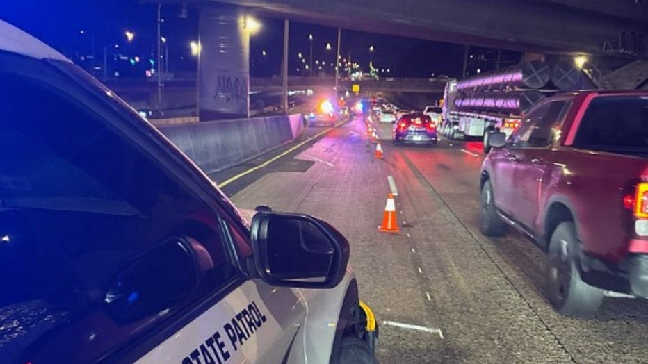 The crash left one lane blocked for the investigation and caused backups on northbound I-5, but at about 2 a.m., all lanes reopened.