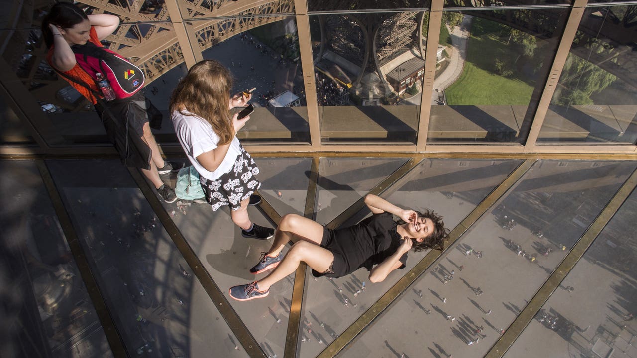 Offering dramatic views of the 57-meter (187-foot) drop from the 125-year-old landmark's first level, the transparent walkway has already proved a hit with visitors lining up -- and lying down -- to take selfies.