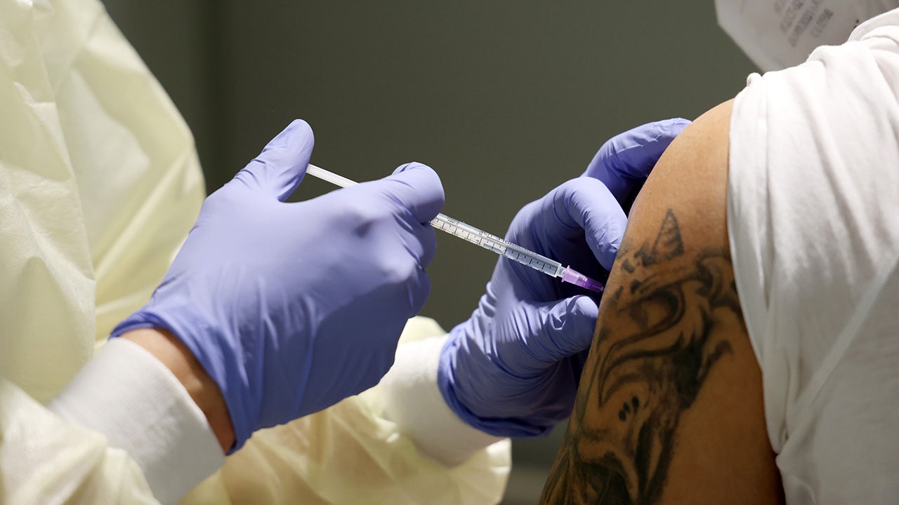 A healthcare worker administers a dose of the Nuvaxovid Novavax Inc. Covid-19 vaccine at the Tegel Vaccine Center in Berlin, Germany, on Monday, March 7, 2022. (Liesa Koppitz-Johanssen/Bloomberg via Getty Images)