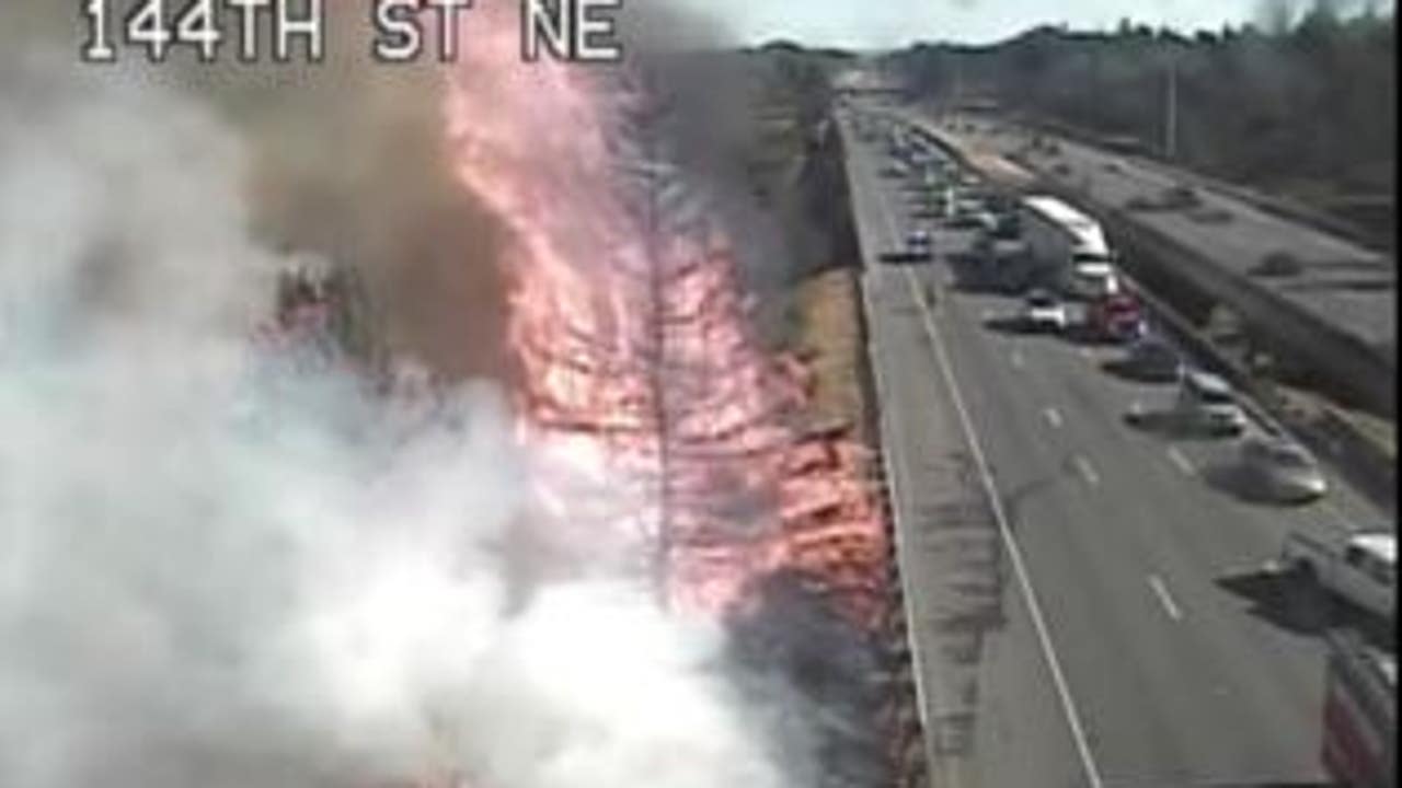 The first fire was reported around 5 p.m., just north of 116th Street NE. Other fires spread on that stretch of I-5 for about three miles.