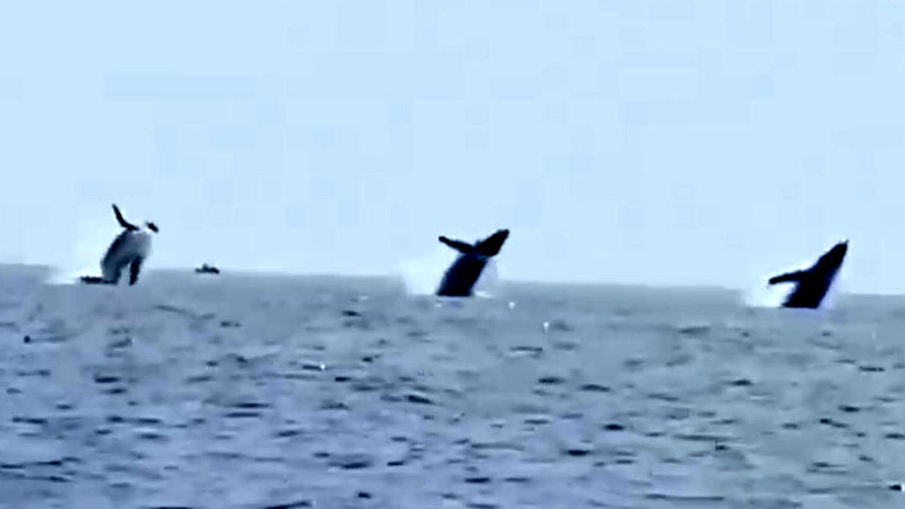 Family captures ‘stunning’ video of synchronized whale breach off Cape Cod