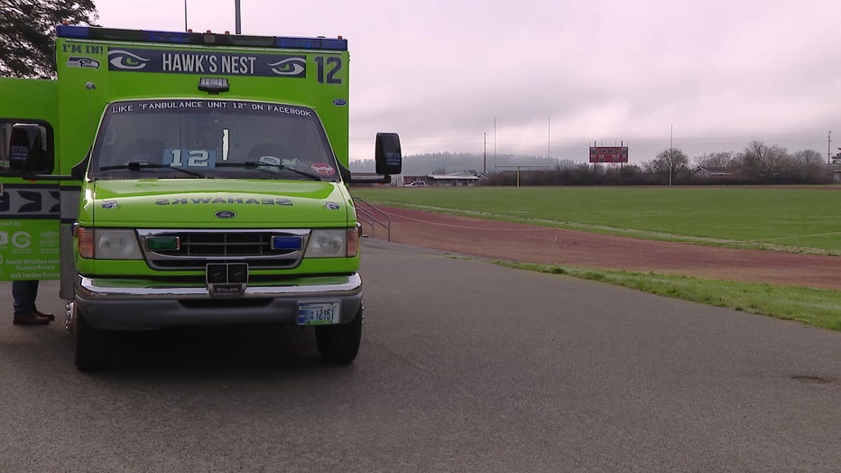 COUPEVILLE, Wash. - With nearly 400,000 miles on the odometer, a reimagined ambulance is making rounds all over Whidbey Island and the North Sound, serving as a Seahawks fan's first response unit.