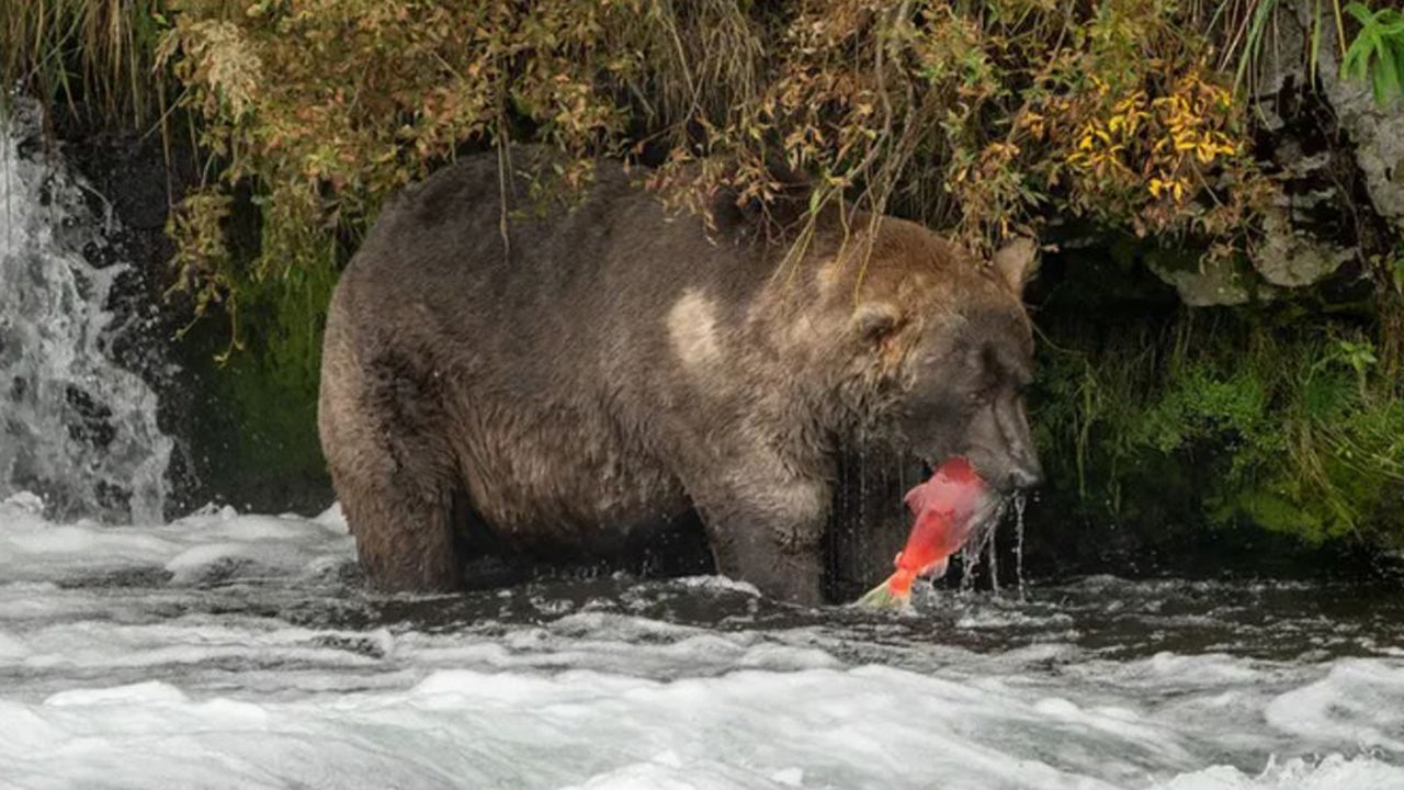 Last year’s champion was Bear 747. According to explore.org, an organization that partners with the Katmai National Park and Preserve and the Katmai Conservancy to host Fat Bear Week, Bear 747 was first identified as a young bear in 2004 that struggled to compete with larger bears for prime fishing territory. Ever since, he has grown to become one of the largest brown bears on Earth, weighing in at approximately 1,400 pounds.