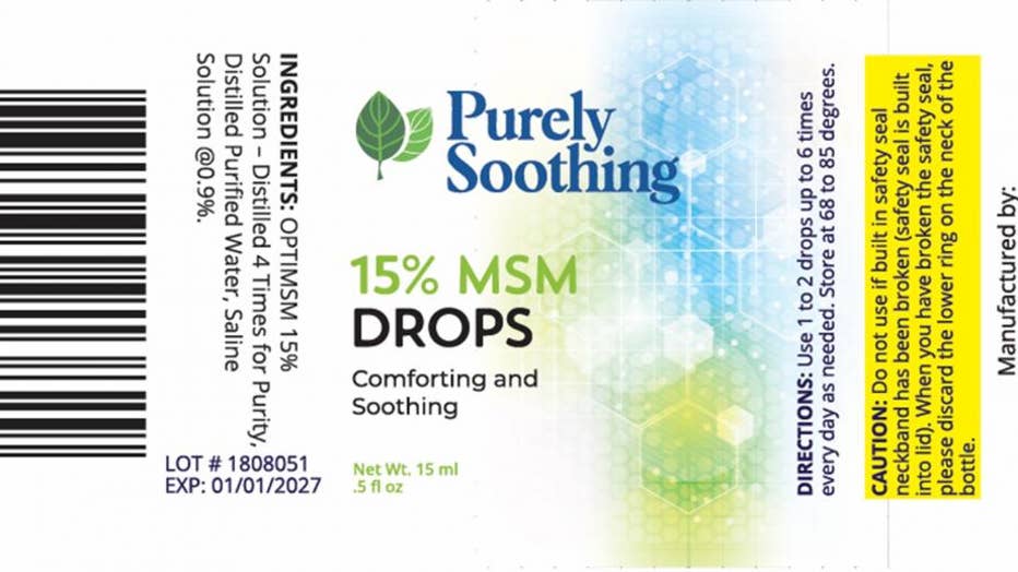 Pharmedica on Friday said it is recalling two lots of Purely Soothing 15% MSM Drops due to problems "that could result in blindness." The over-the-counter drops are designed to treat eye irritation. The Phoenix-based company said consumers should immediately stop using the drops and return them to the place they were purchased.