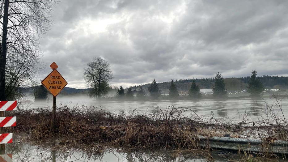 Wednesday, swollen rivers and creeks near Carnation sent floodwater spilling into soggy farm fields and onto water-logged roads.