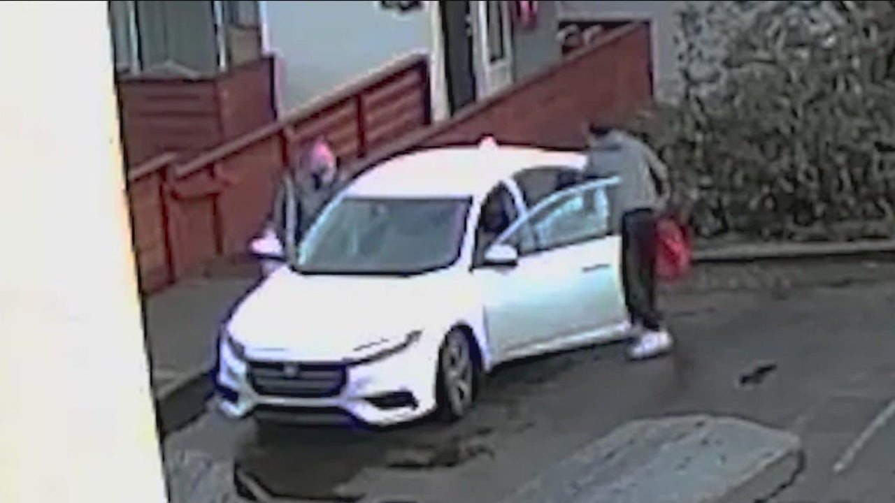 On that day, surveillance cameras captured two people in gray-colored clothing, one of them holding a box. They were standing next to a white or light-colored car before they walked out of frame.