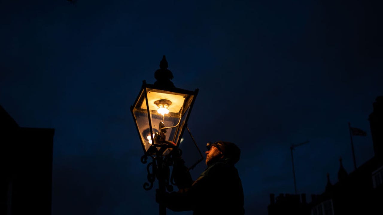 FILE - A gas lamp lighter engineer works in St John Smith Square, Westminster, London. (Photo by Aaron Chown/PA Images via Getty Images)