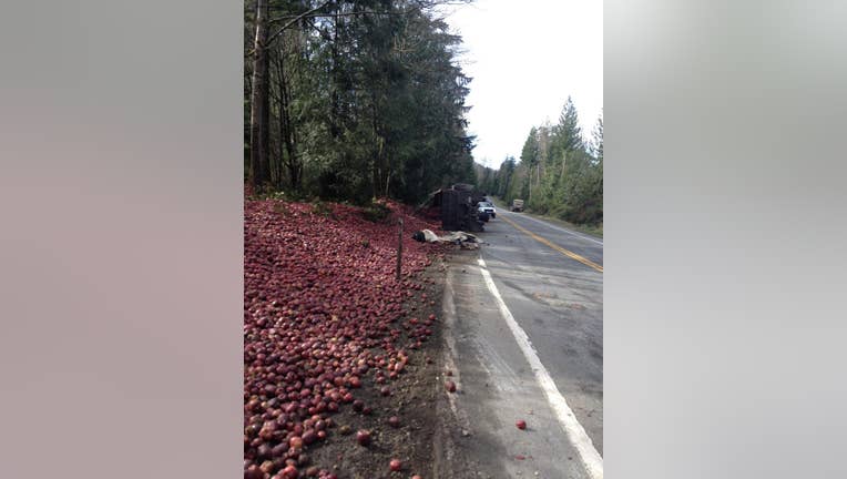 The Washington Department of Transportation tweeted this photo of the spilled apples along the highway.