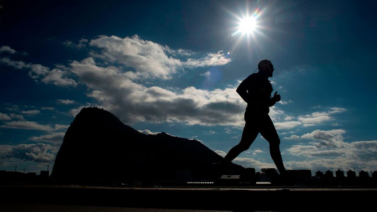 FILE - A man runs past the Rock of Gibraltar in La Linea de la Concepcion on Jan. 4, 2021. (Photo by JORGE GUERRERO/AFP via Getty Images)