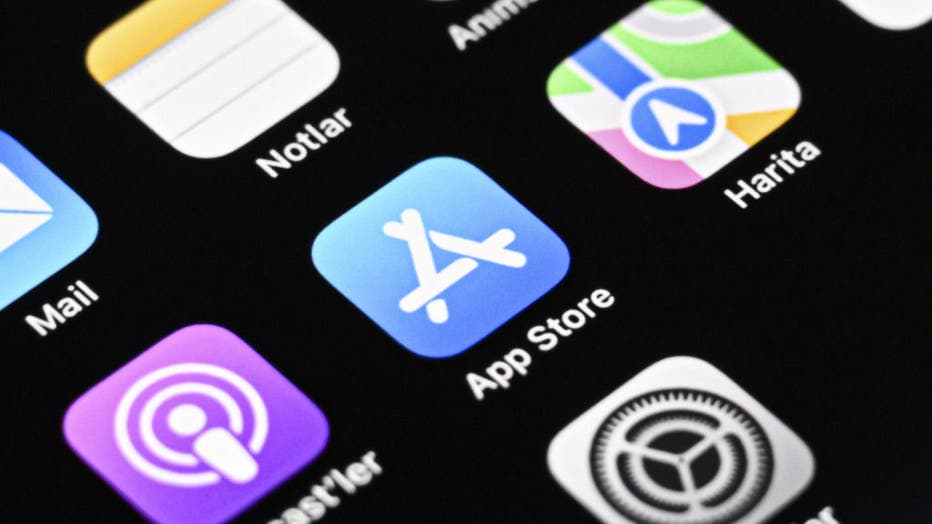ANKARA, TURKIYE - SEPTEMBER 05: In this photo illustration, App Store icon is being displayed among other Apple apps on an iPhone screen in Ankara, Turkiye on September 5, 2023. (Photo by Berke Bayur/Anadolu Agency via Getty Images)