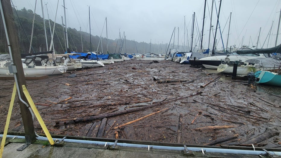 Flooding at Tacoma's Tyee Marina has clogged the water up with trees and debris. (Courtney Wimer)