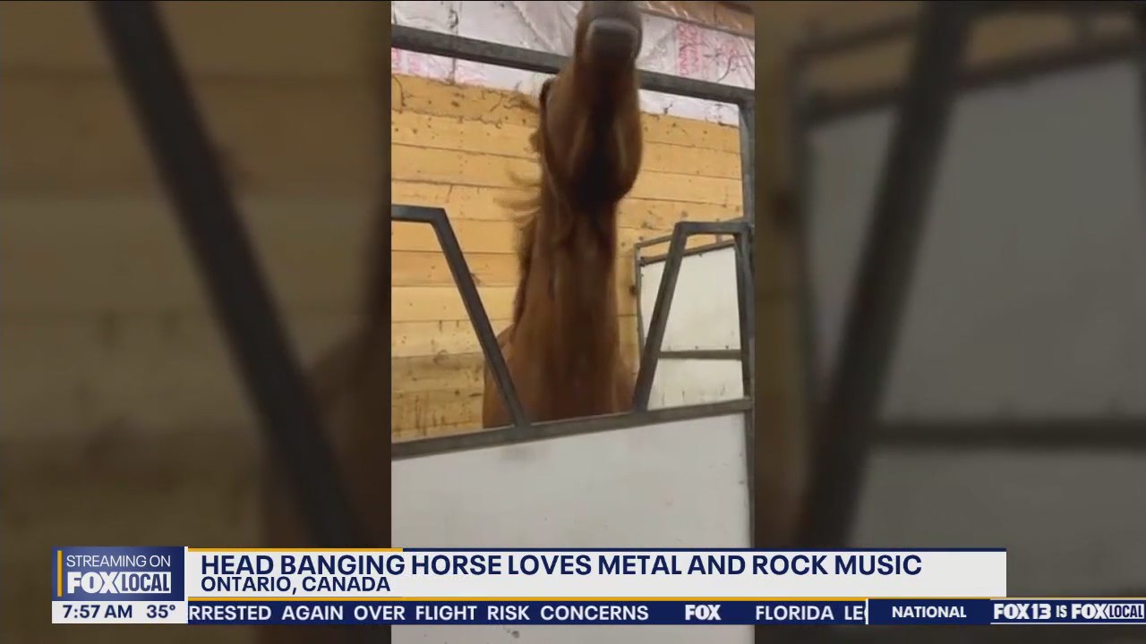 This horse in Ontario, Canada is going viral because she LOVES heavy metal. Triple drum kicks, guitar shredding and the crashing of cymbals are just a few metal elements that get this horse's head banging!
