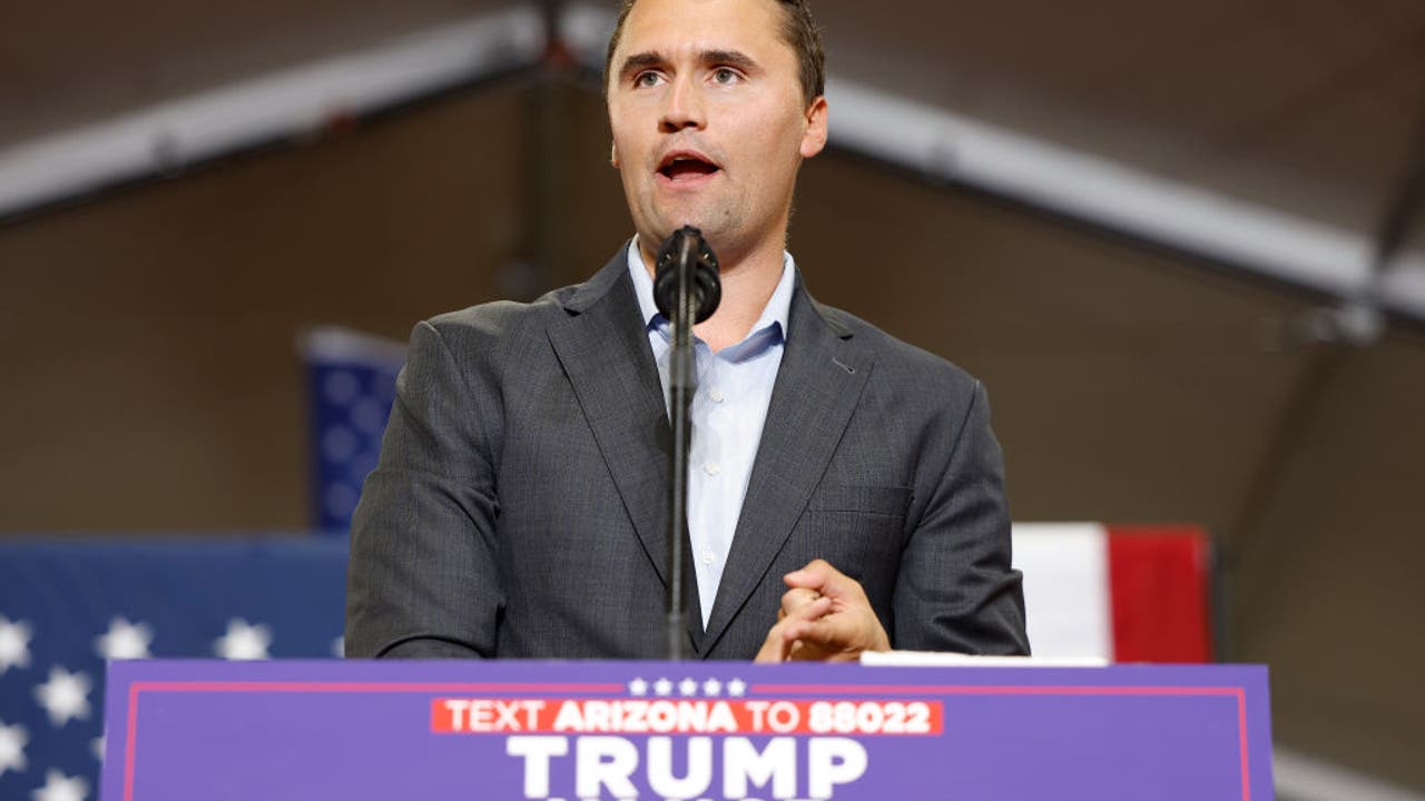 Charlie Kirk, who founded Turning Point USA, speaks before Republican vice presidential nominee U.S. Sen. JD Vance (R-OH) gives remarks at a campaign rally at Arizona Christian University on July 31, 2024 in Glendale, Arizona. Vance has traveled to c (Anna Moneymaker/Getty Images)