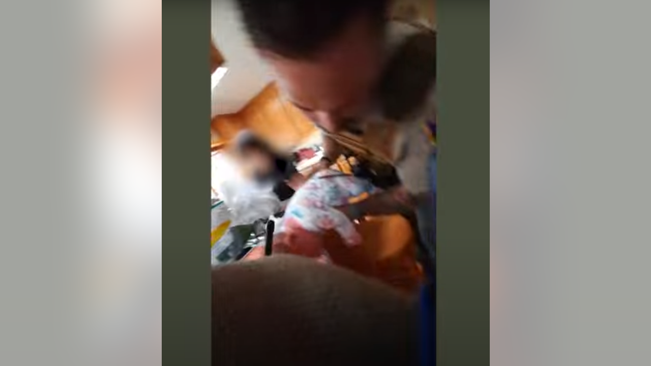 The video, shared by the sheriff's office with the baby's parents’ permission, shows Carnahan tapping on the back of the infant and, at times, blowing air into her mouth and nose in the family's kitchen.