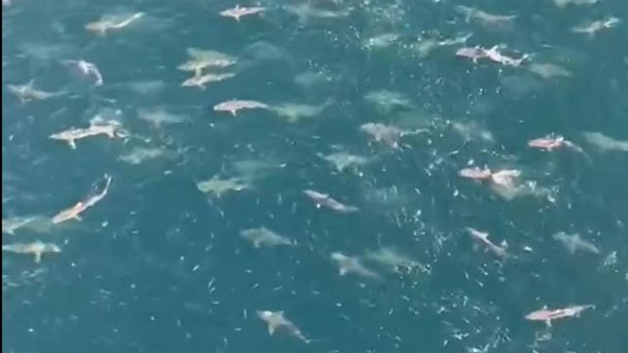 GALVESTON - A mesmerizing spectacle unfolded when a massive school of sharks swimming together in the Gulf of Mexico near Galveston was posted on Tiktok and Facebook garnering millions of views and shares.