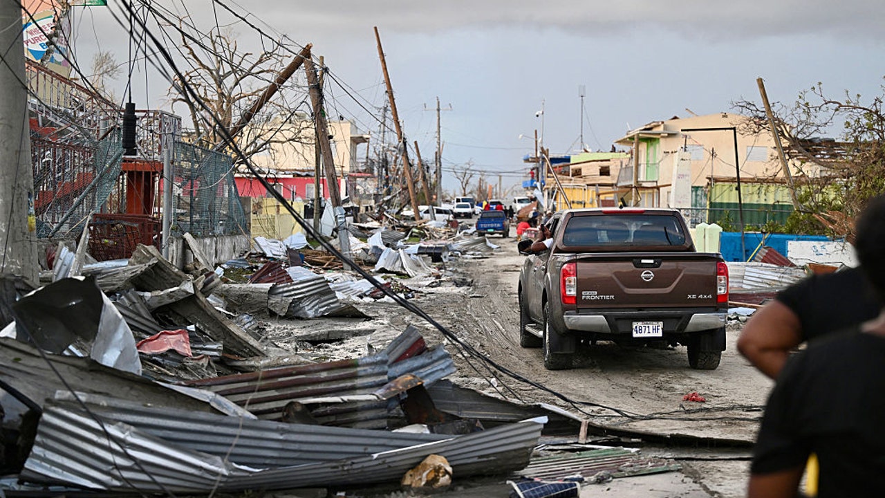 FILE-A car drives through the a destroyed neighborhood following the passage of Hurricane Melissa, in Black River, Jamaica on October 29, 2025. (Photo by RICARDO MAKYN/AFP via Getty Images)