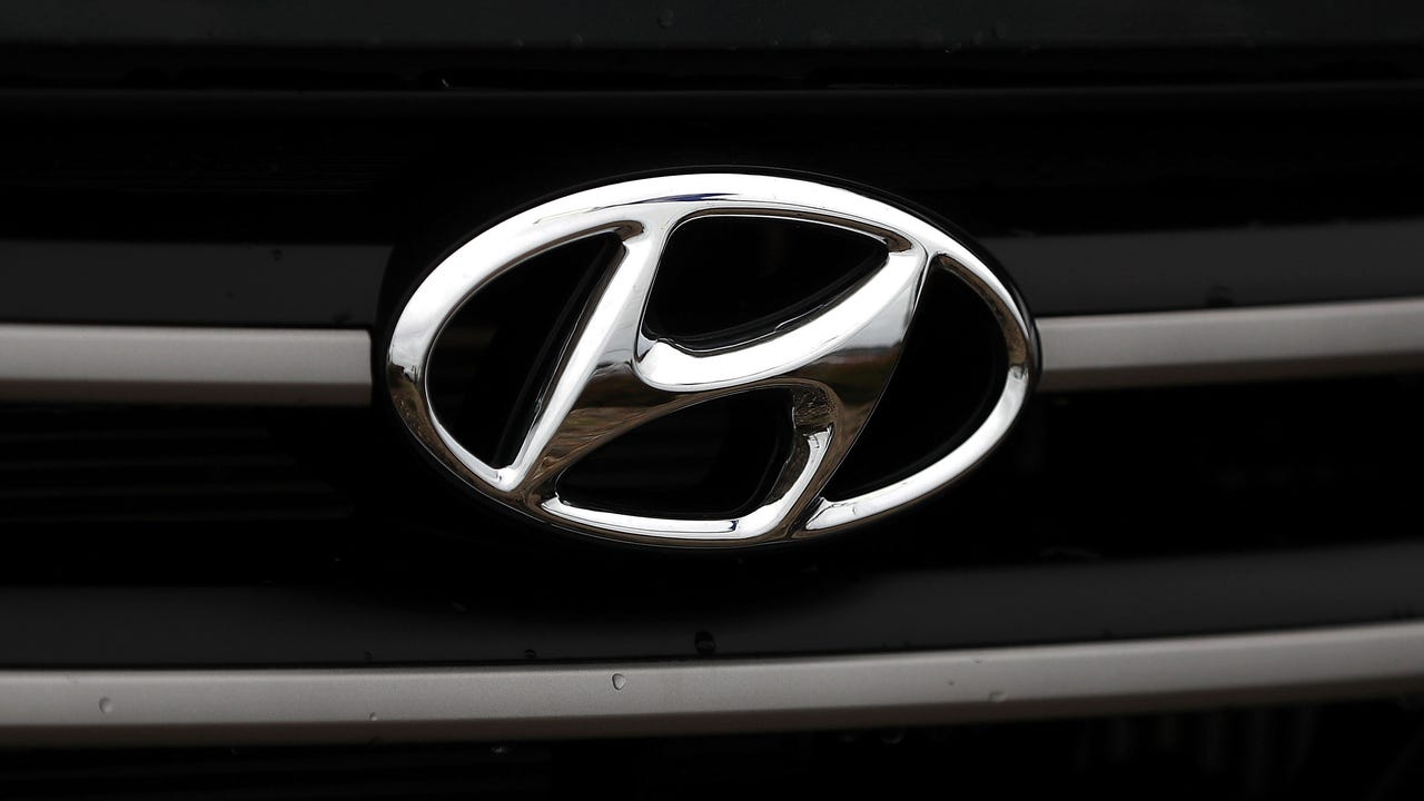 The Hyundai logo is displayed on a brand new Hyundai Santa Fe SUV at a Hyundai dealership on April 7, 2017 in Colma, California. (Photo by Justin Sullivan/Getty Images)