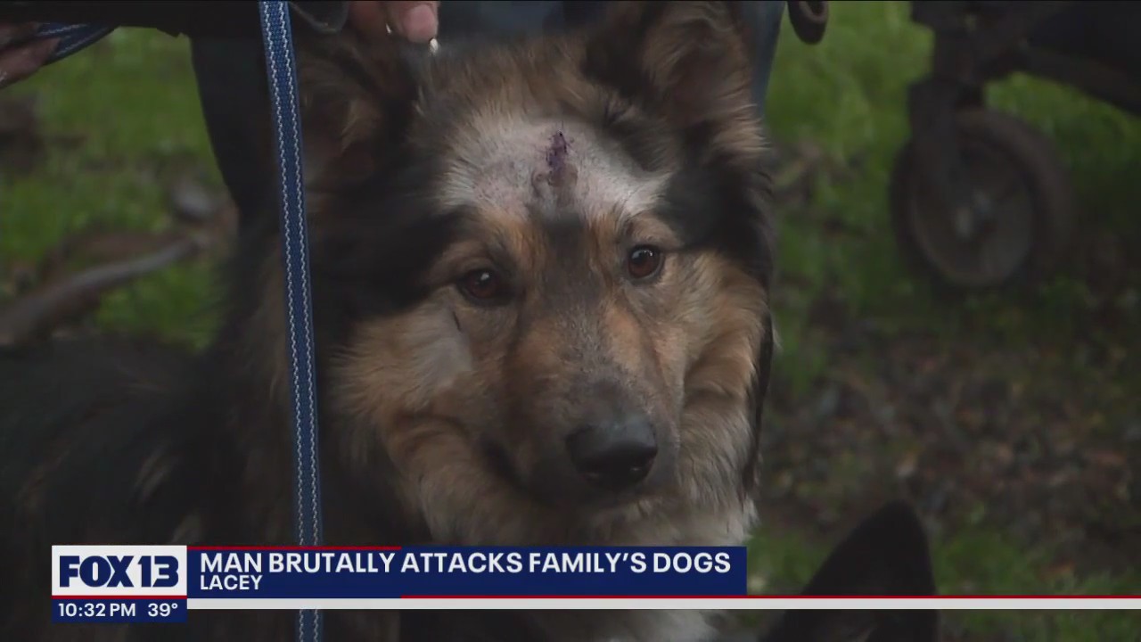 Lacey Police are looking for the man who brutally attacked a family’s four dogs this week, in a seemingly random incident.