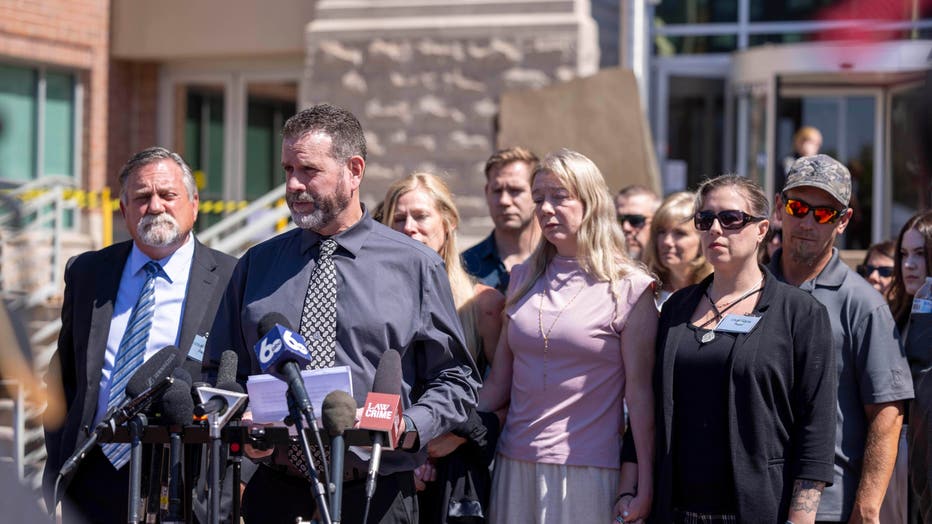 FILE - A statement is made after the Bryan Kohberger sentencing July 23, 2025, outside of the Ada County Courthouse in Boise, Idaho. (AP Photo/Drew Nash, File)