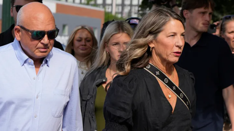 The family of Ethan Chapin including mother Stacy Chapin and father Jim Chapin arrive at Ada County Courthouse for Bryan Kohberger's plea deal hearing on Wednesday, July 2, 2025, in Boise, Idaho. (AP Photo/Jenny Kane)