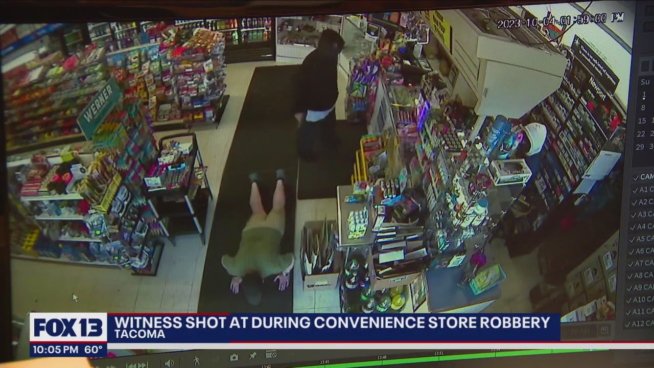 A Good Samaritan was shot at after chasing after two suspects in an armed corner store robbery in Tacoma.