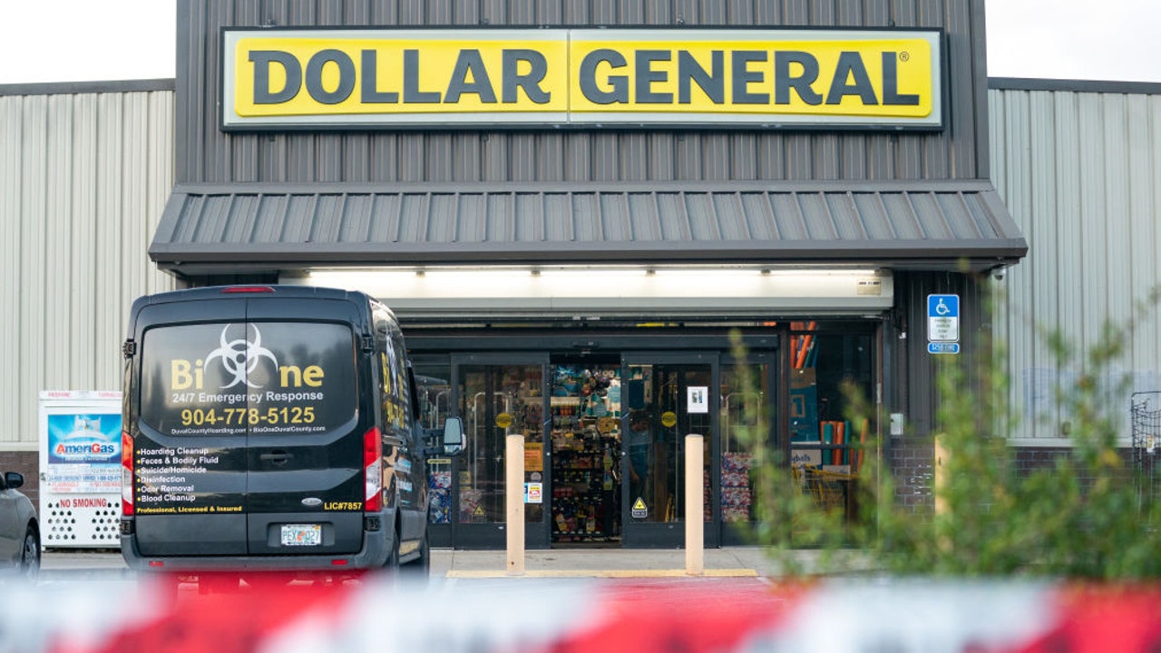 Crime scene tape fronts the Dollar General store where three people were shot and killed the day before on August 27, 2023 in Jacksonville, Florida. (Photo by Sean Rayford/Getty Images)