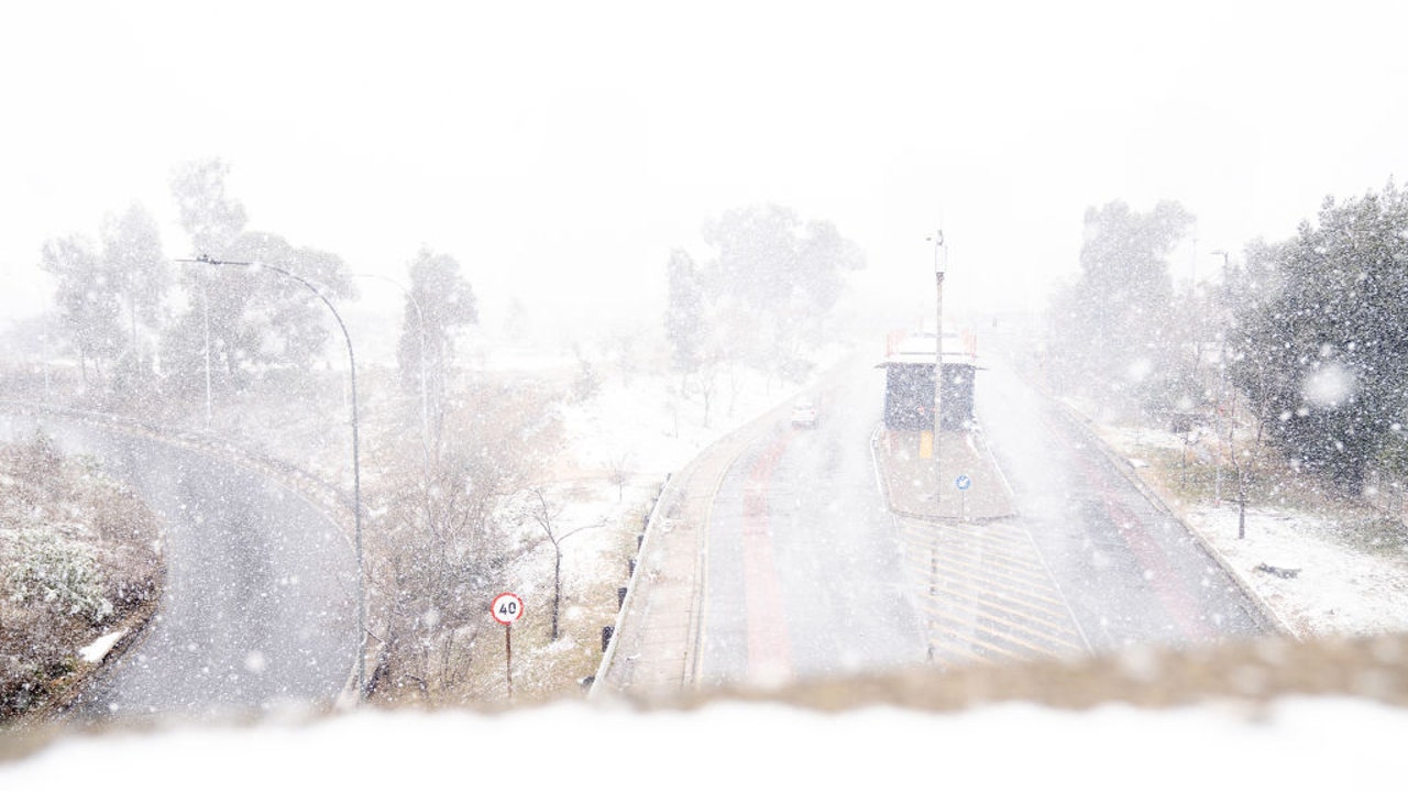 A view of snow-covered streets during snowfall in Johannesburg, South Africa on July 10, 2023. (Shiraaz Mohamed/Anadolu Agency via Getty Images)