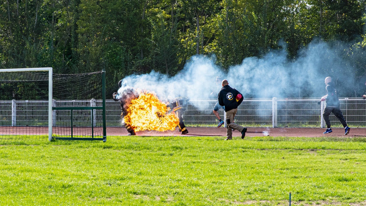 HAUBOURDIN, France - A French firefighter and stuntman known as the "human torch" has broken the world record for running the longest distance without oxygen – while on fire.