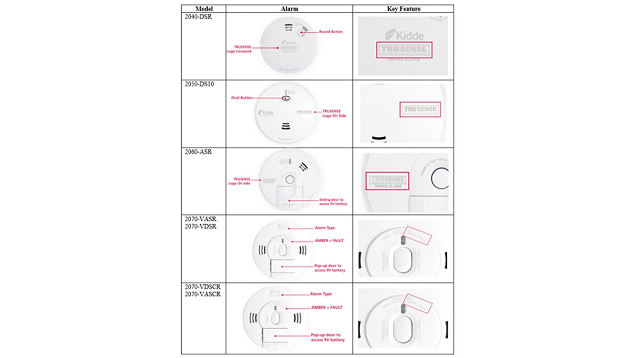 Diagram of Kidde alarms impacted in recall. (Kidde)
